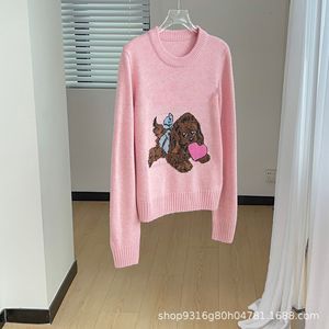 七夕限定南油高版本丹麦小众设计爱心卡通小狗提花圆领套头毛衣女
