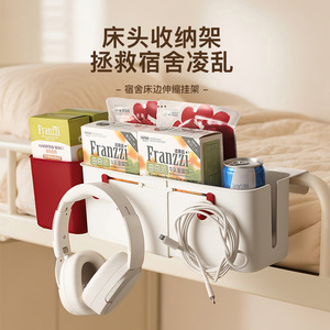 免打孔宿舍床头收纳架多功能寝室上铺置物架可伸缩宝宝床侧边挂篮