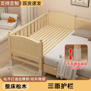 全实木儿童拼接床婴儿床加宽带护栏可调节高度男孩女孩床