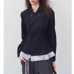 2025秋季新款“无可替代”双排扣牛仔打褶收腰衬衫通勤上衣外套女