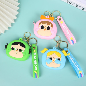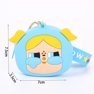 可爱硅胶零钱包钥匙扣手提哭娃耳机收纳包包装饰小挂件撞色设计