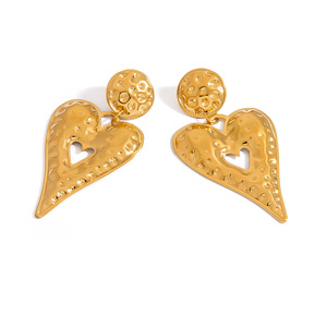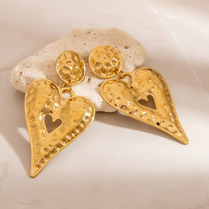 跨境不锈钢耳钉中风镂空爱心欧美夸张耳饰18K金不掉色耳环女