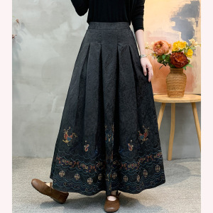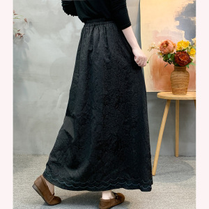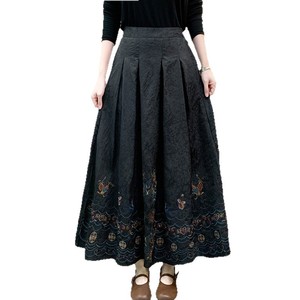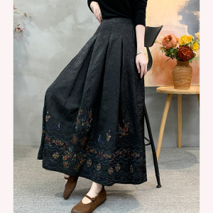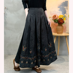 2025秋季新款松紧腰大码显瘦半身裙纯色民族风刺绣中长款半身裙女