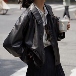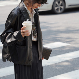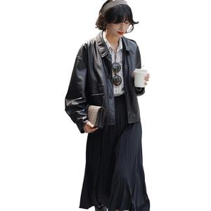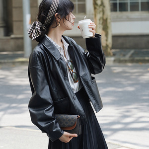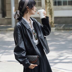 感帅气宽松pu皮皮衣外套女2025春秋季新款哑光黑色廓形皮夹克