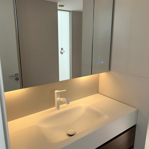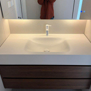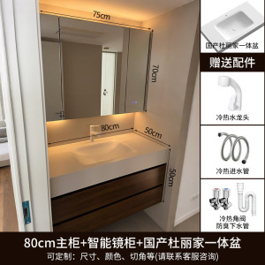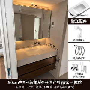 中古风胡桃木色浴室柜组合岩板陶瓷无缝盆洗手盆洗脸盆柜洗漱台