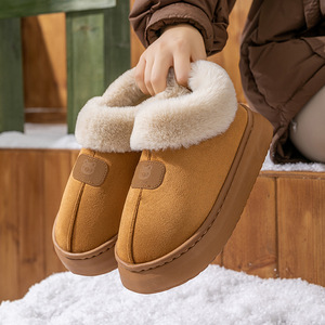 雪地靴情侣款居家室内保暖防滑厚底增高4.5cm外穿加绒爆款棉鞋冬