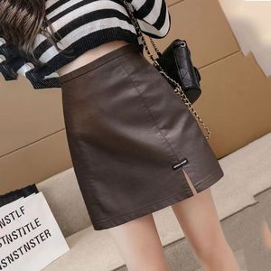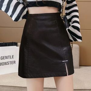 皮裙半身裙女2025秋冬新款高腰A字裙显瘦开叉短款包臀裙百搭