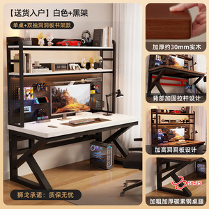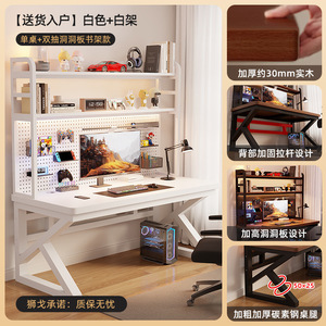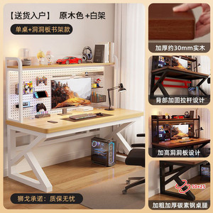 洞洞板台式电脑桌家用书桌书架一体组合学习办公桌卧室实木电竞桌