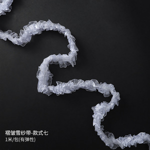 新品褶皱雪纱丝带鲜花束装饰蕾丝花边带diy手工配饰材料花艺缎带
