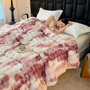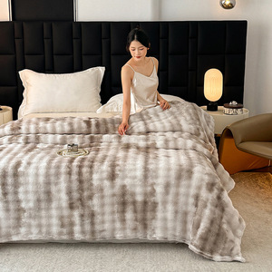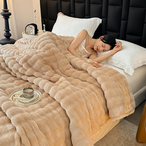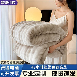 跨境外贸仿濑兔毛毯子法兰绒办公室午睡毯双面加厚珊瑚绒空调盖毯