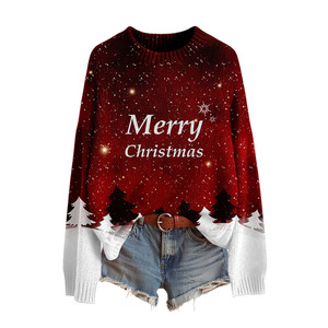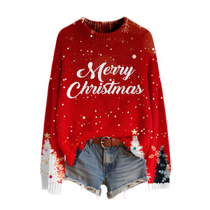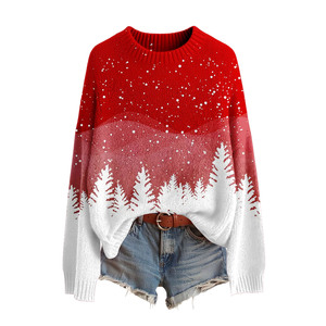 JXX-YZH-YT6圣诞节爆款圆领套头印花毛衣欧美费尔岛复古圣诞树