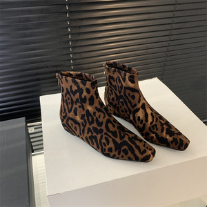小众设计内增高坡跟小短靴女2025年春瘦瘦靴方头后拉链法式及踝靴