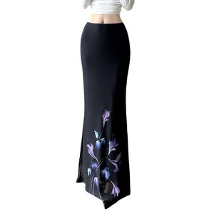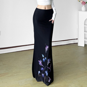 享跃复古花卉印花显瘦包臀半身裙女百搭纯色气质网纱双层休闲长裙