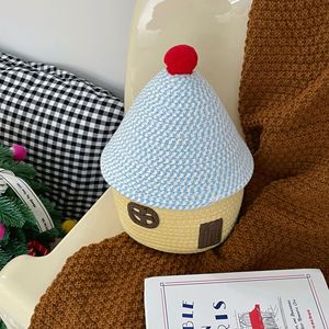 可爱棉绳带盖收纳筐家居杂物收纳篮桌面防尘摆件手工编织收纳篮