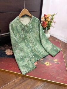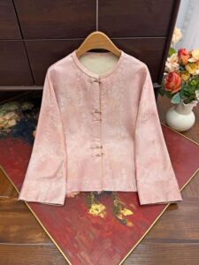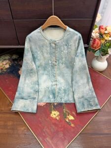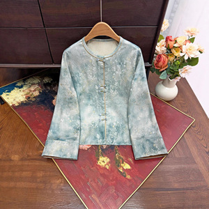 2025早秋新款新中式国风提花晕染外套圆领盘扣长袖开衫减龄小衫女