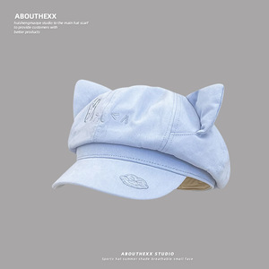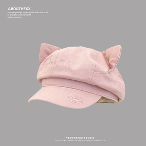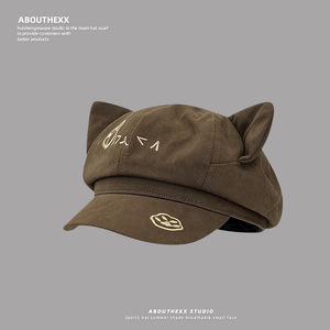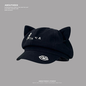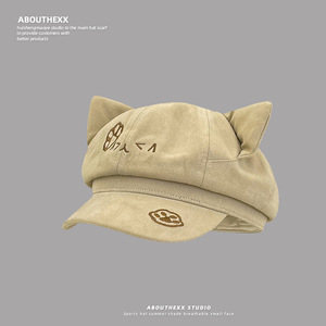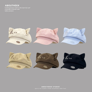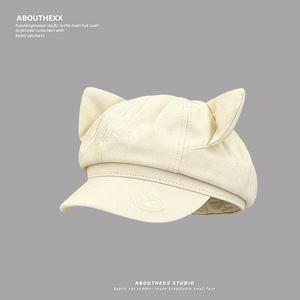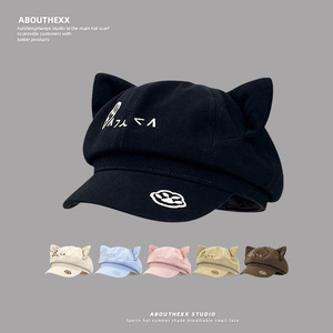 跨境外贸帽子女显脸小日系八角帽可爱卡通猫咪耳朵百搭鸭舌报童帽