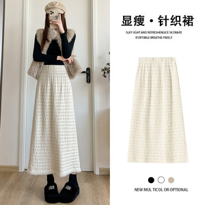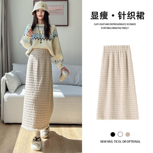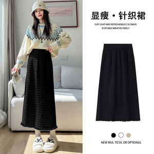 实拍软糯设计流苏针织半身裙女高腰显瘦毛线裙肌理直筒休闲长裙子