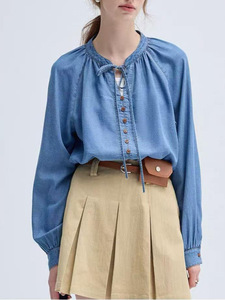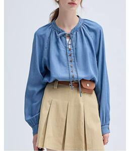 【莱赛尔+亚麻】VEGA衬衫女2025秋季新款法式复古牛仔衬衣