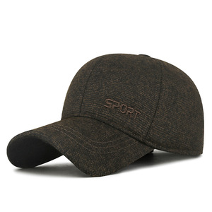 新款秋冬季中年男士棒球帽保暖老头棉帽户外刺绣SPORT防寒鸭舌帽