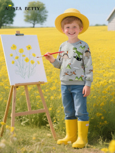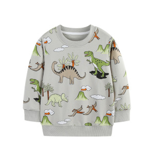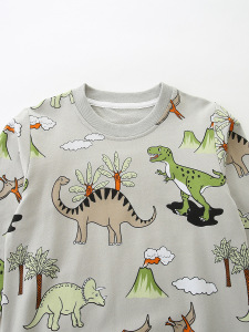 跨境货源男童卫衣欧美风时尚恐龙印花儿童运动衫针织棉圆领运动衫