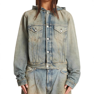 深圳南油2025秋季新款女士做旧连帽牛仔外套美式街头轻奢潮流上衣