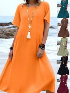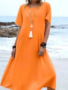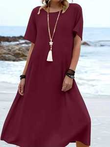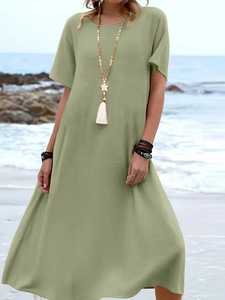 2025欧美跨境亚马逊夏季爆款舒适简约高级纯色圆领短袖连衣裙