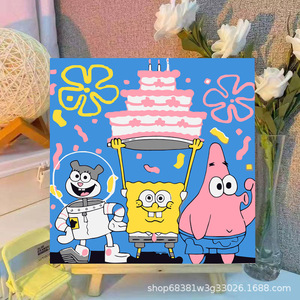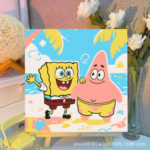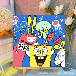 新款海绵宝宝数字油画DIY哆啦A梦儿童卡通手绘填色生日礼物送朋友