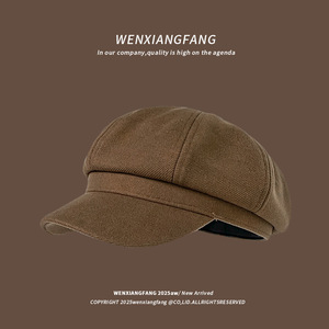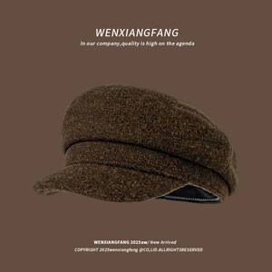 棕色毛呢八角帽