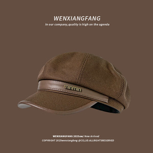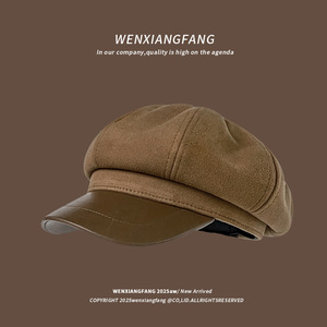 日系复古美拉德八角贝雷帽女时尚百搭大头围显脸小鸭舌画家帽子潮