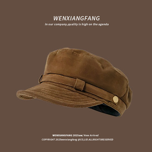 棕色麂皮八角帽