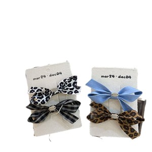 2只装白色豹纹+格子蝴蝶结鸭嘴夹套装