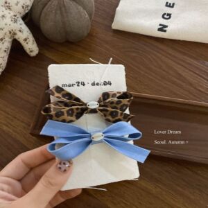 2只装韩国新款豹纹蝴蝶结鸭嘴夹发夹 时尚高级感刘海夹侧边夹发饰