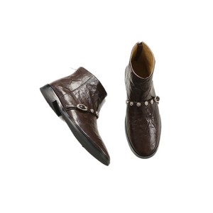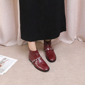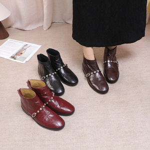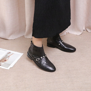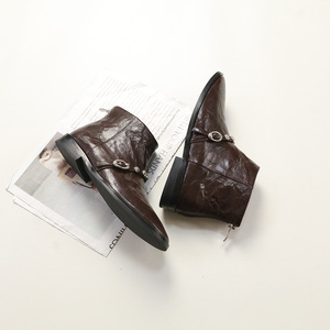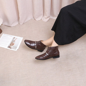 2025新款牛皮搭扣尖头时尚短筒靴时尚靴休闲复古靴子女时装靴