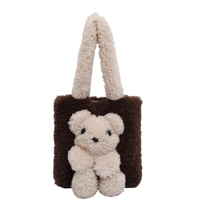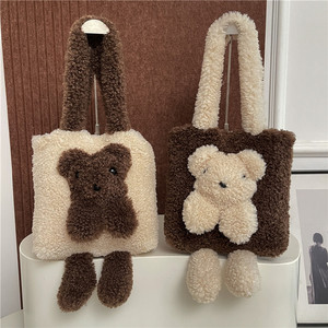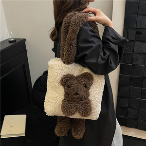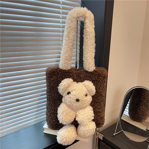 潮流新款托特腋下包仿羊羔毛手工制作大容量拼色时尚简约手提包