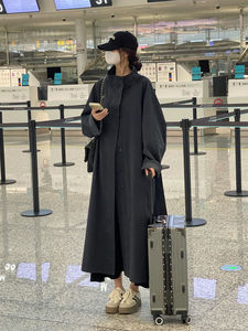 韩系慵懒风垂感宽松风衣外套女秋季新款感休闲长款大衣潮