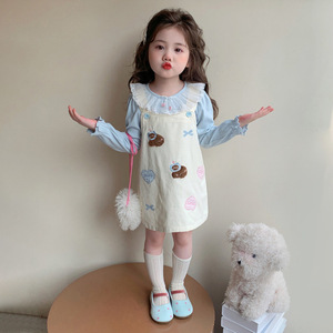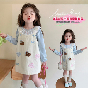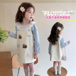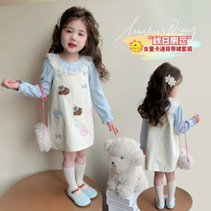 女童裙子套装早秋新品2025洋气时髦小猫背带裙两件套儿童宝宝春装