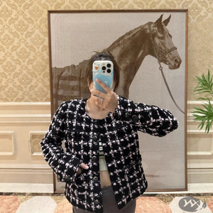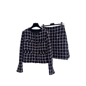 2025秋季新款南油cha法式名媛小香风复古圆领格纹外套+短半裙套装