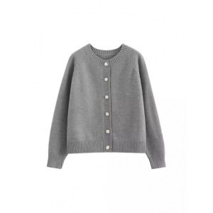 韩版百搭毛衣外套长袖短款 上衣春季温柔风 气质圆领女宽松针织衫
