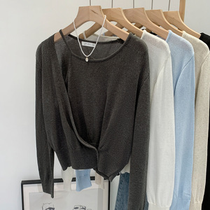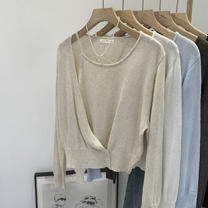 绝美巨好看设计感吊带背心薄款针织罩衫假两件女2025秋季新款上衣