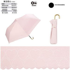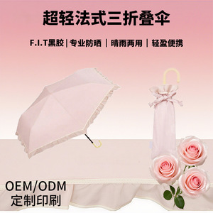 定制日式雨伞遮阳晴雨两用防紫外线太阳粉色三叠超轻法式黑胶花边