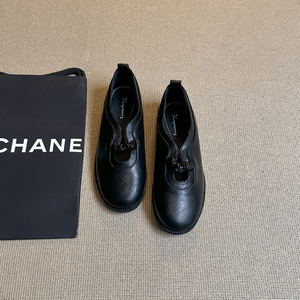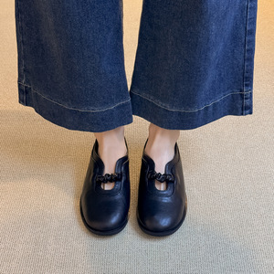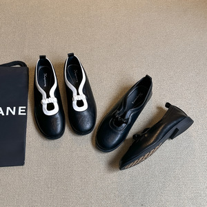现货~大码女鞋40-42 小众拼色小皮鞋女 配裙子平底浅口单鞋3326-C