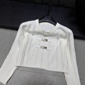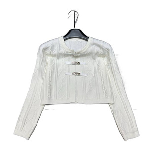 2025年秋季新款皮带格子针织长袖圆领开衫宽松百搭女上衣