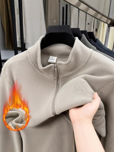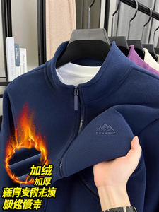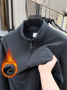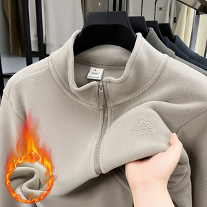 2025冬季新款奥粒绒男士立领开衫外套休闲加绒加厚保暖摇粒绒夹克