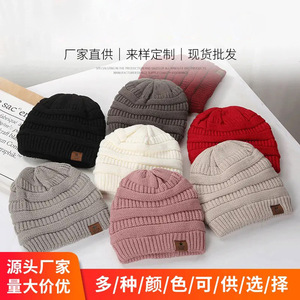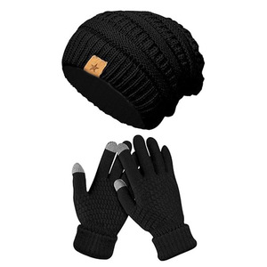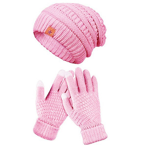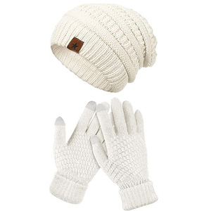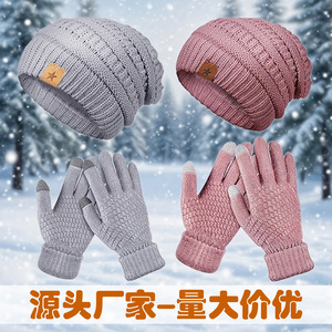 秋冬季跨境爆款帽子欧美亚马逊热卖针织毛线帽保暖帽子手套二件套