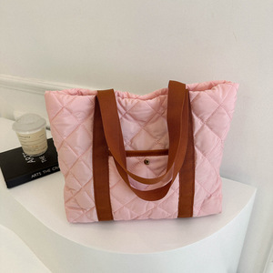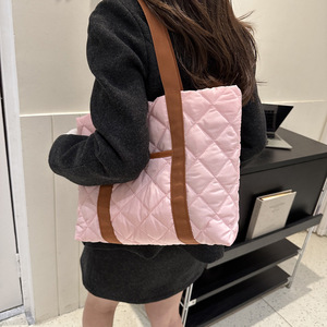 小众秋冬女包外贸新款时尚牛津布单肩包简约大容量棉服腋下托特包