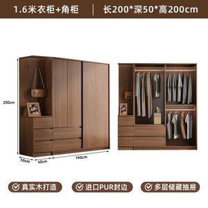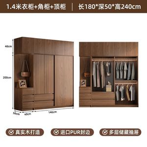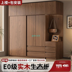 网红实木衣柜家用卧室推拉门中式储物柜子小户型新款出租房屋衣橱
