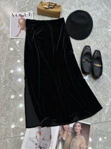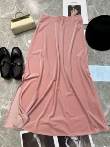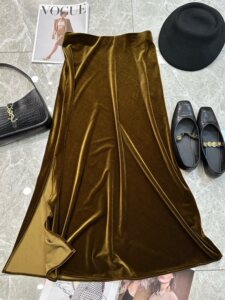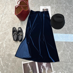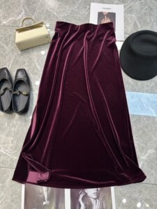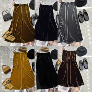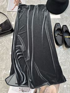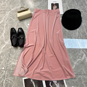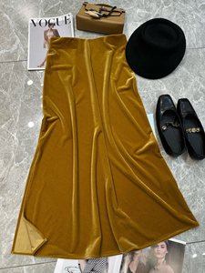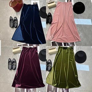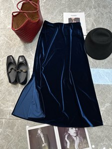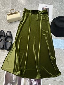 南油代发2025秋款简约百搭松紧腰斜裁丝绒半裙日常通勤长裙不退换