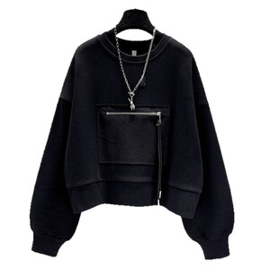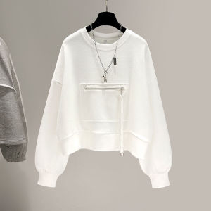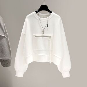 短款圆领长袖卫衣女2025春秋韩版潮流宽松拉链口袋小众套头上衣潮