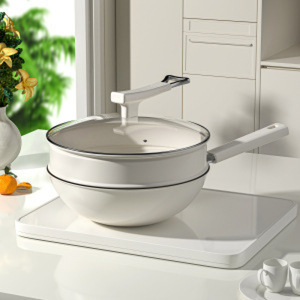 34-奶白炒锅+钢化盖+硅胶铲+海绵擦+蒸笼