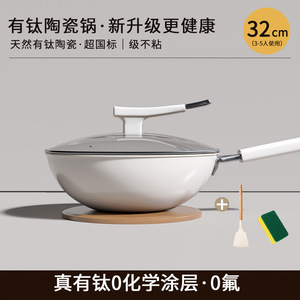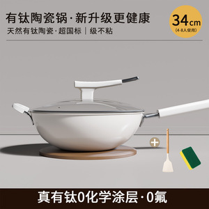 德国不粘锅炒锅家用有钛无涂层陶瓷不沾平底炒菜锅燃气电磁炉